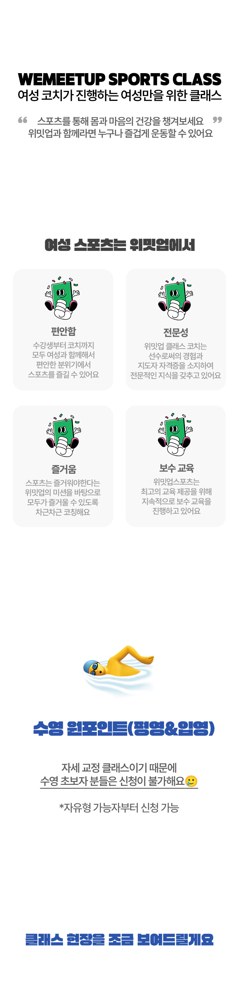 *한 레인만 사용하는 수업이기 때문에 옆 레인에 남성분이 있을 수도 있습니다.
